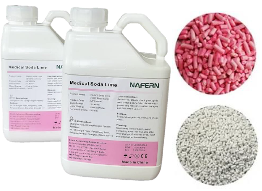 Nafern Soda Lime is a superior CO₂ absorbent used in anesthesia and respiratory equipment to efficiently remove carbon dioxide from exhaled air. Made from Calcium Hydroxide (86.99%), Sodium Hydroxide (1%), and Water (12%), it offers an excellent CO₂ absorption capacity of >140L/kg and CO₂ activity of >29%.