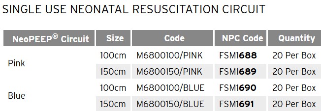 The circuit is available in pink or blue, and it is a single-use device, making it a hygienic and reliable option for neonatal care.
